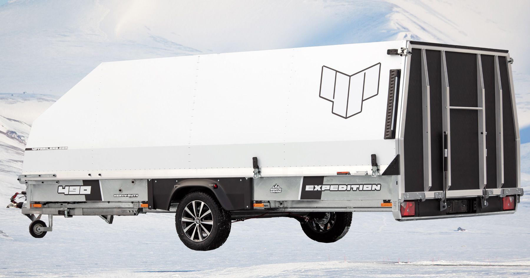 Ett starkt och smidigt skotersläp som samtidigt har gott om plats till minst en skoter och packning.