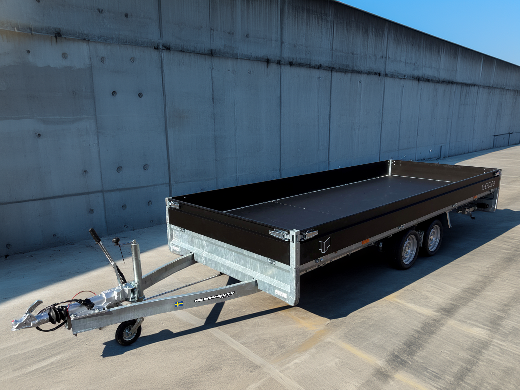 Våra största släp som har allt för att lasta de snabbaste fordonen. Tippa hela vagnen och fäll ned bakgavel för att få en uppskörningsramp som är helt plan. Finns i två storlekar, 550 med dubbel eller trippelaxel, 650 med Trippelaxel.