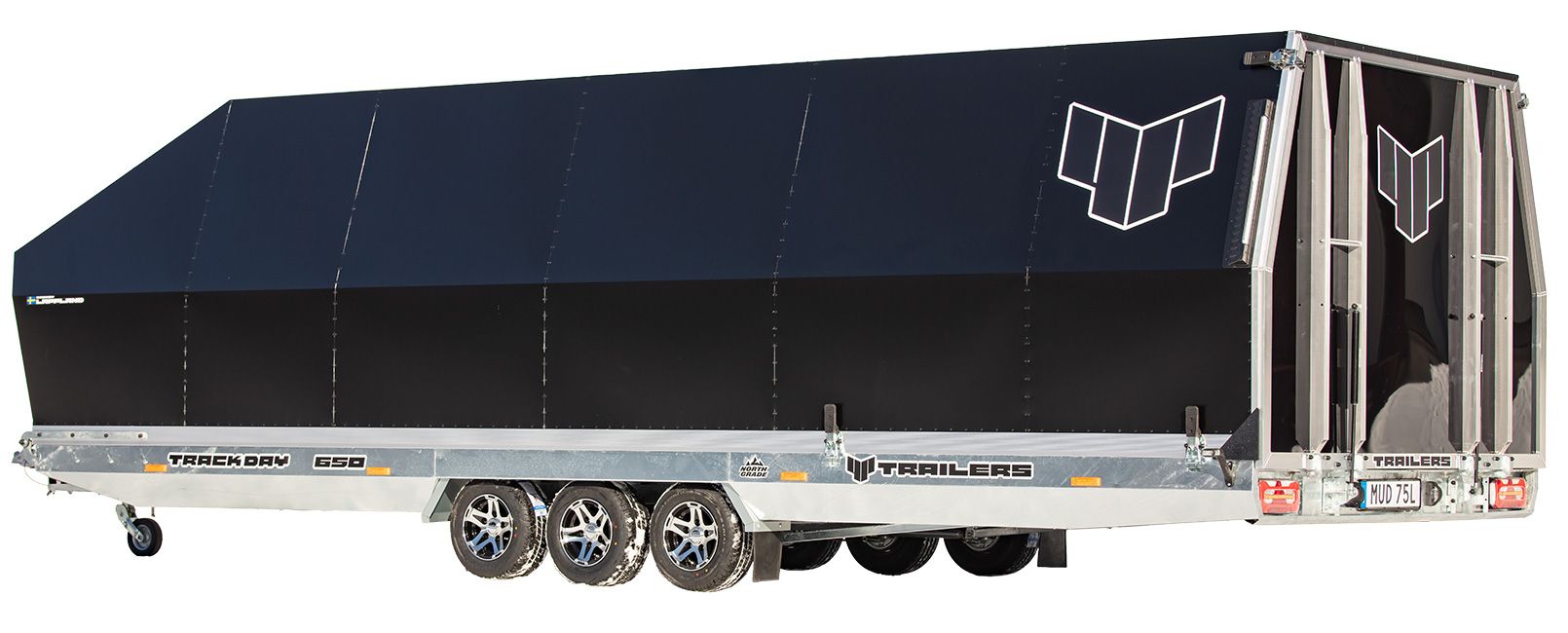 Våra största släp som har allt för att lasta de snabbaste fordonen. Tippa hela vagnen och fäll ned bakgavel för att få en uppskörningsramp som är helt plan. Finns i två storlekar, 550 med dubbel eller trippelaxel, 650 med Trippelaxel.