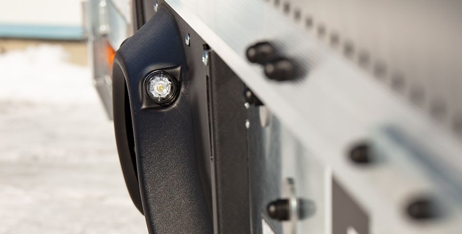 Lämlås med formgjutna handtag som fäster direkt i skeppan. Det ökar styrkan i lämmarna och undviker påsvetsade delar.